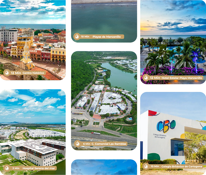 – A 12 Min del Centro Histórico – A 3 Min del Hospital Serena del Mar – A 10 Min de Playas de Manzanillo – A 6 Min de C.C Las Ramblas – A 12 Min del Hotel Estelar Playa Manzanillo – A 10 Min del Colegio Británico de Cartagena
